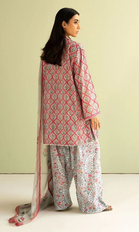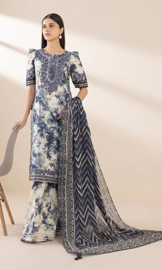Lawn 3pc unstitched heavy embroidered suit with embroidered dupatta