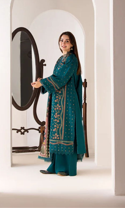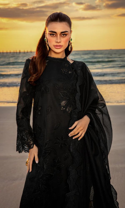 Lawn 3pc unstitched heavy embroidered suit with embroidered laces