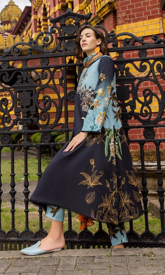 Lawn 3pc unstitched luxury digital printed suit with embroidered patches