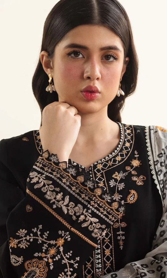 Dhanak 3pc unstitched fully embroidered suit with digital printed wool shawl