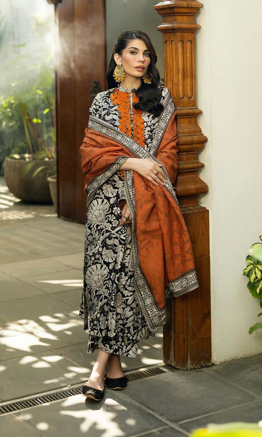 Lawn 3pc fully embroidered suit with poly lawn digital printed shawl