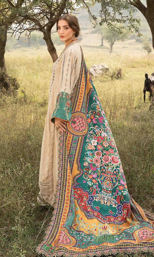 Lawn 3pc unstitched heavy embroidered suit with poly lawn digital printed dupatta