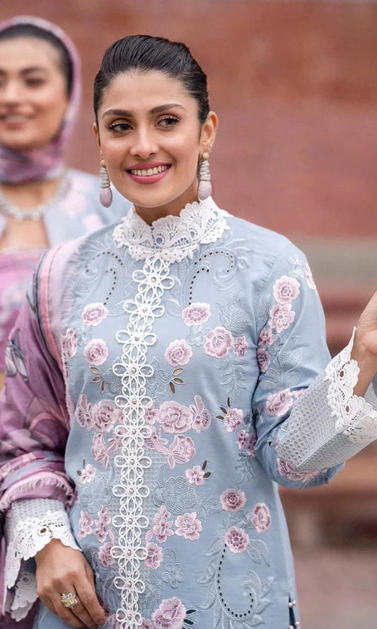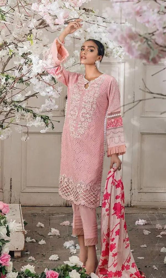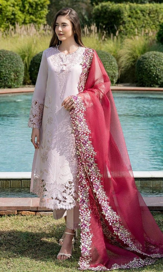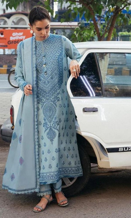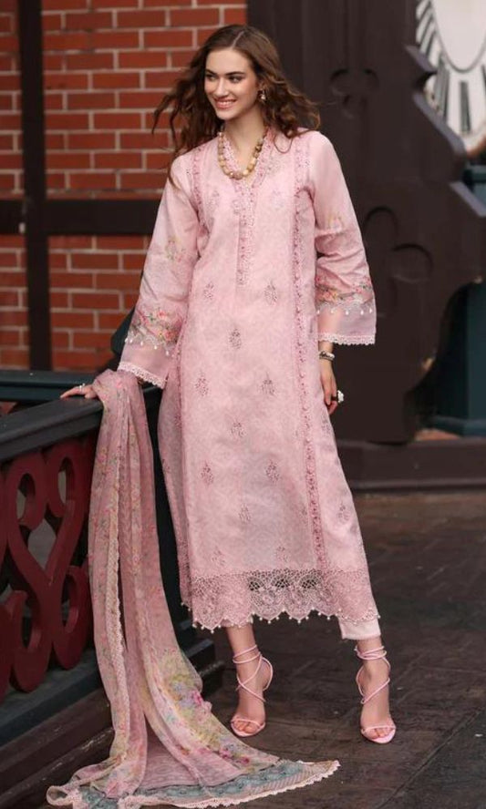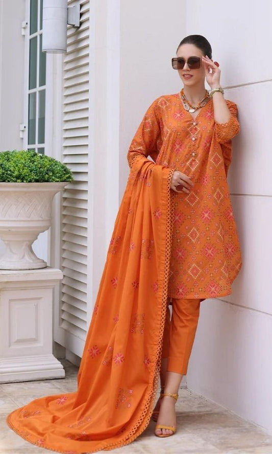 Lawn 3pc heavy embroidered suit with embroidered dupatta