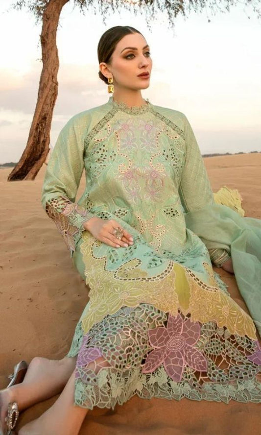 Lawn 3pc heavy embroidered chiken kari suit with pallu cutwork dupatta