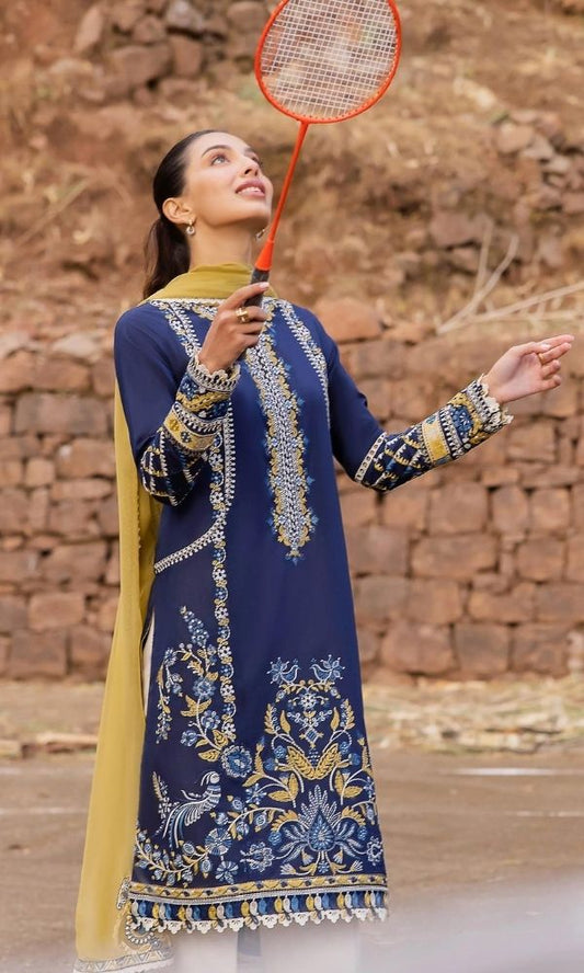 Lawn 3pc chiken kari embroidered suit with monar printed dupatta