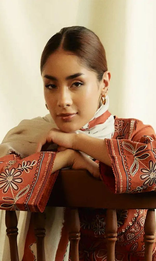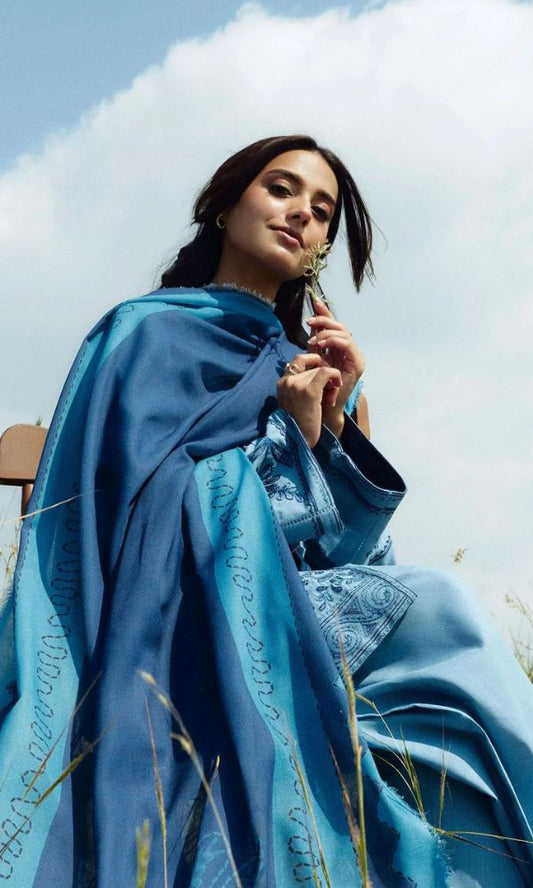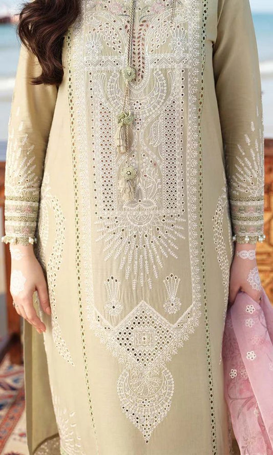 Lawn 3pc fully embroidered suit with 4 sided embroidered dupatta
