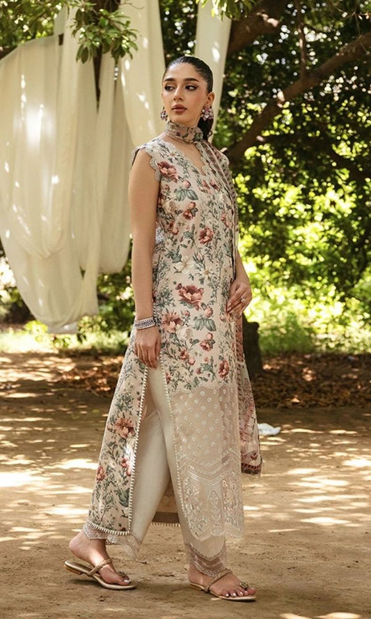 Lawn 3pc unstitched digital printed embroidered suit with embroidered patches