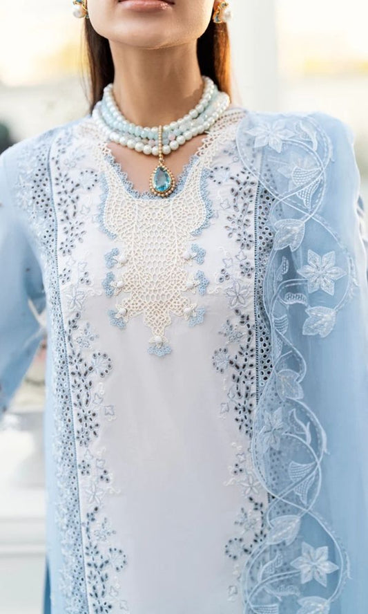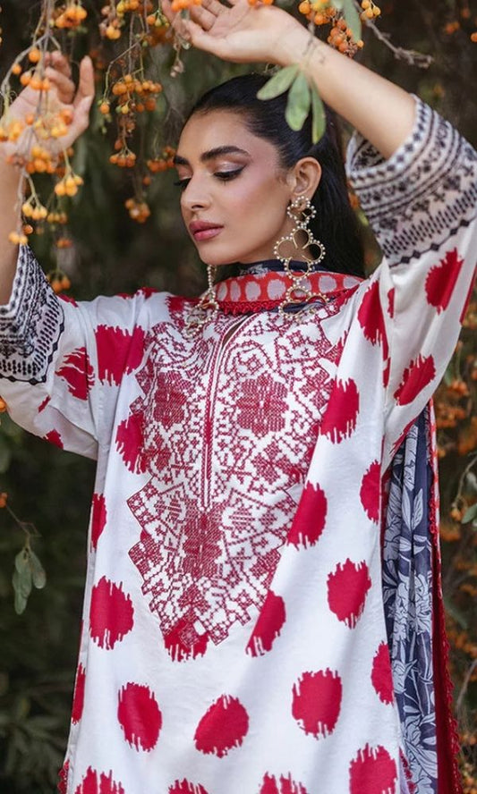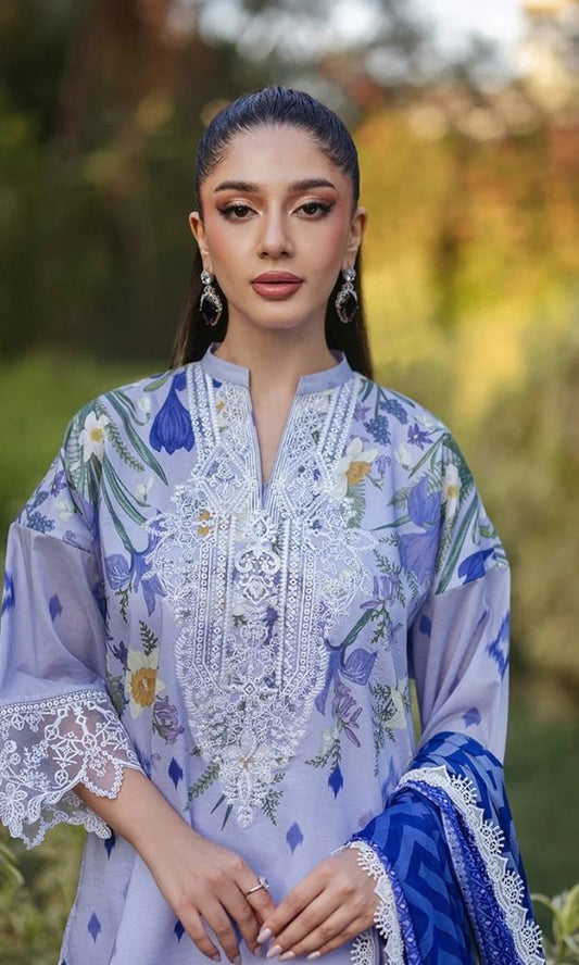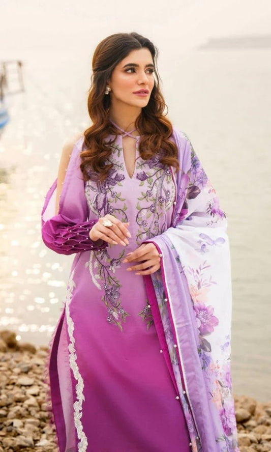 Lawn 3pc unstitched embroidered suit with embroidered dupatta