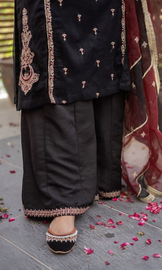 Lawn 3pc unstitched luxury fully chiken kari embroidered suit with embroidered dupatta
