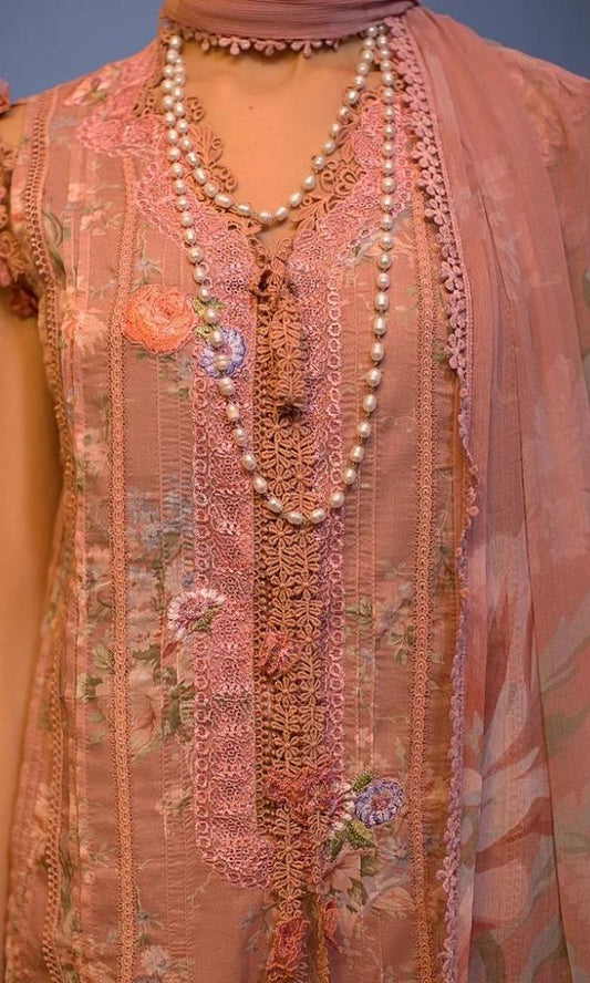 Lawn 3pc digital printed suit with patched and silk dupatta