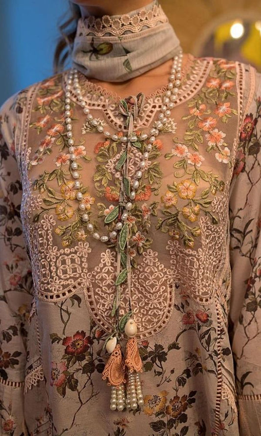Lawn 3pc digital printed suit with patches and silk dupatta