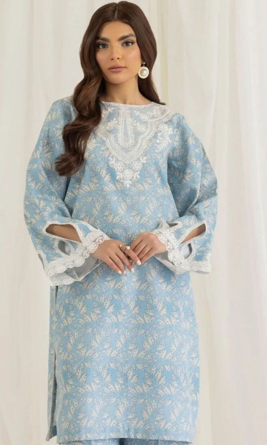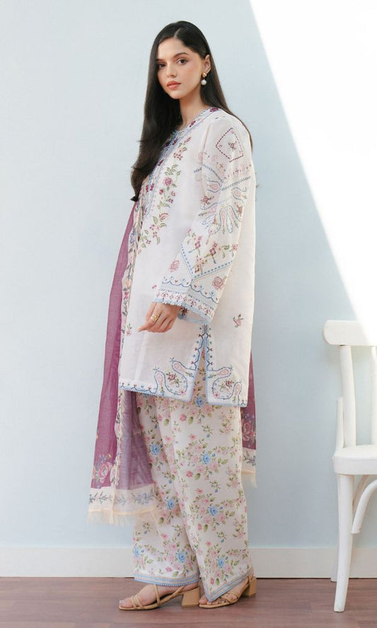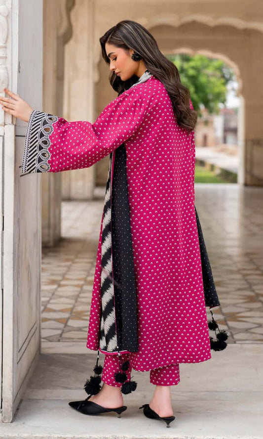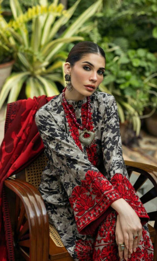 Lawn 3pc unstitched heavy embroidered suit with poly lawn digital printed dupatta