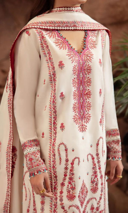 Dhanak 3pc unstitched heavy chiken kari embroidered suit with embroidered trouser