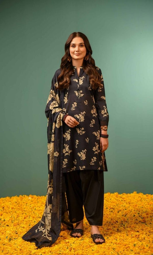 Dhanak 3pc unstitched heavy embroidered suit with digital printed dupatta