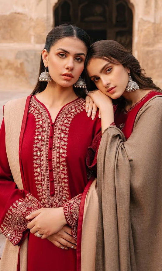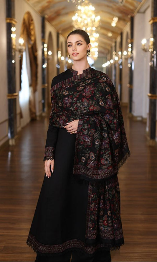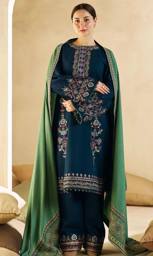 Dhanak 3pc unstitch heavy embroidered suit with poly woolen shawl