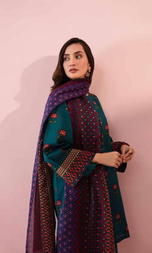 Dhanak 3pc unstitched embroidered suit with woolen shawl