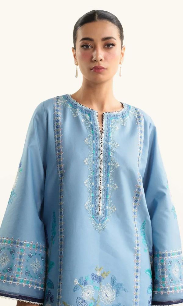 Dhanak 3pc embroidered suit with silk organza dupatta with patches