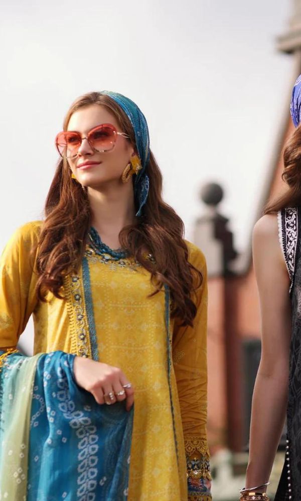 Lawn Digital print shirt with Sequence Embroidered Neck or daman patch