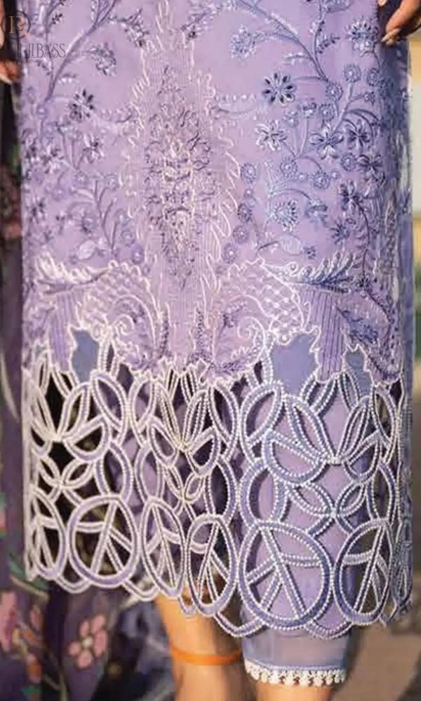 Lawn 3pc heavy boring embroidered shirt with silk dupatta