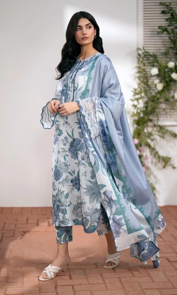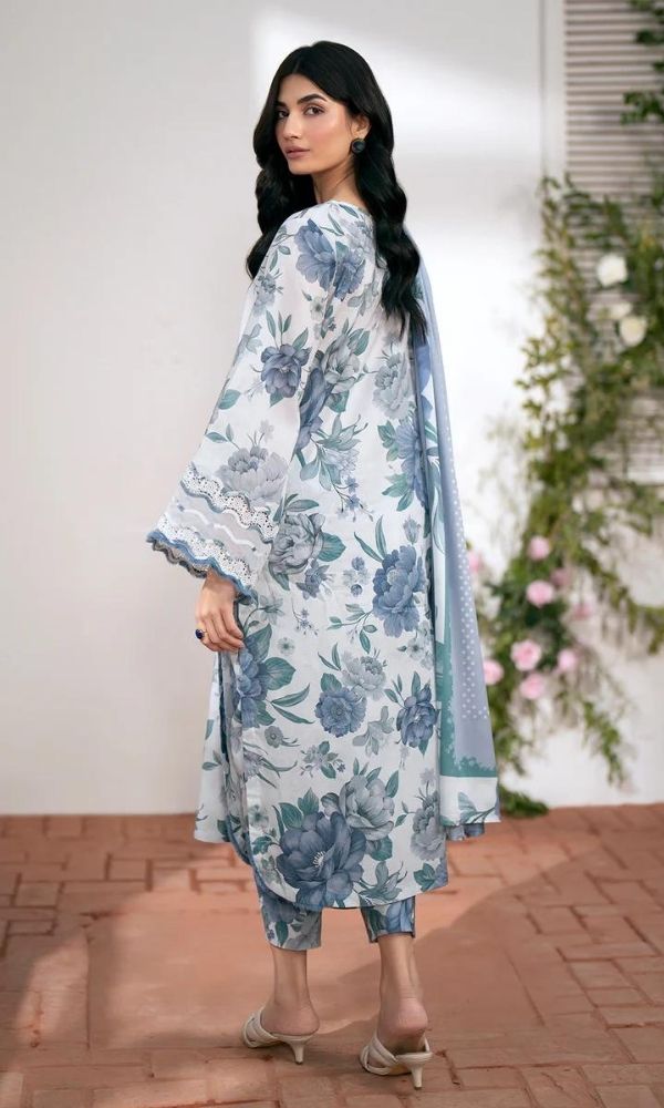 Lawn 3pc unstitched suit with monar printed dupatta